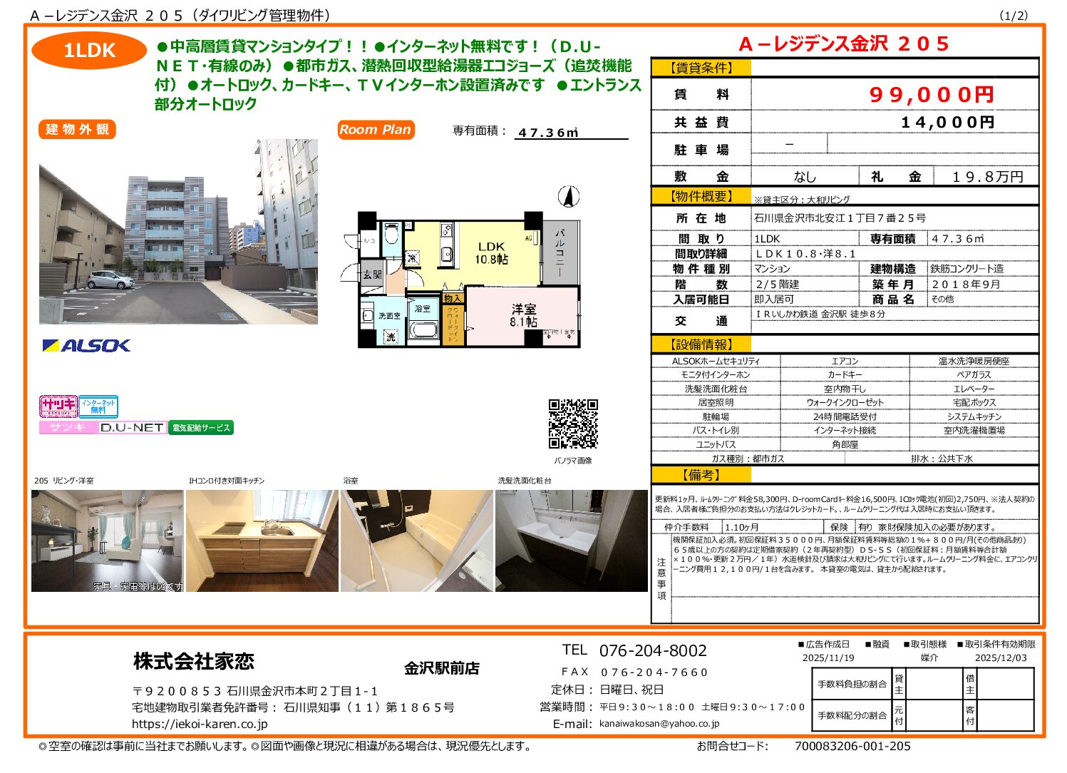 ≫レジデンス金沢-205号室|物件案内書